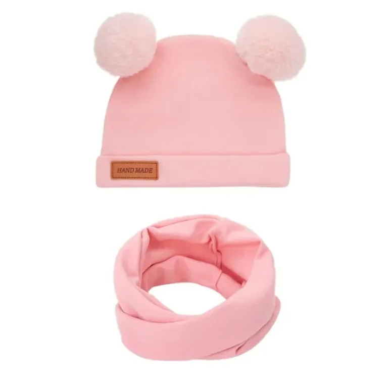 Baby Cloud Σετ παιδικό σκουφάκι με πομ-πομ και κασκόλ Ροζ
